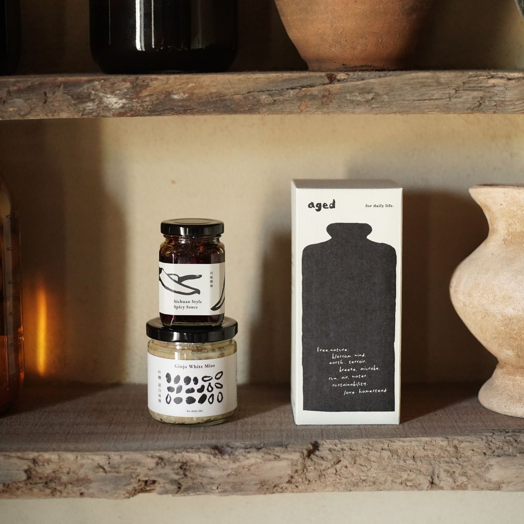 如同品牌名稱 aged,我們很喜歡時間的魔法。器物老件使用的痕跡、木頭風化的紋理、果實醋的靜置熟成,唯有時光醞釀才能轉化的溫潤質地。而在料理上,善用發酵食,絕對是你料理的好朋友。